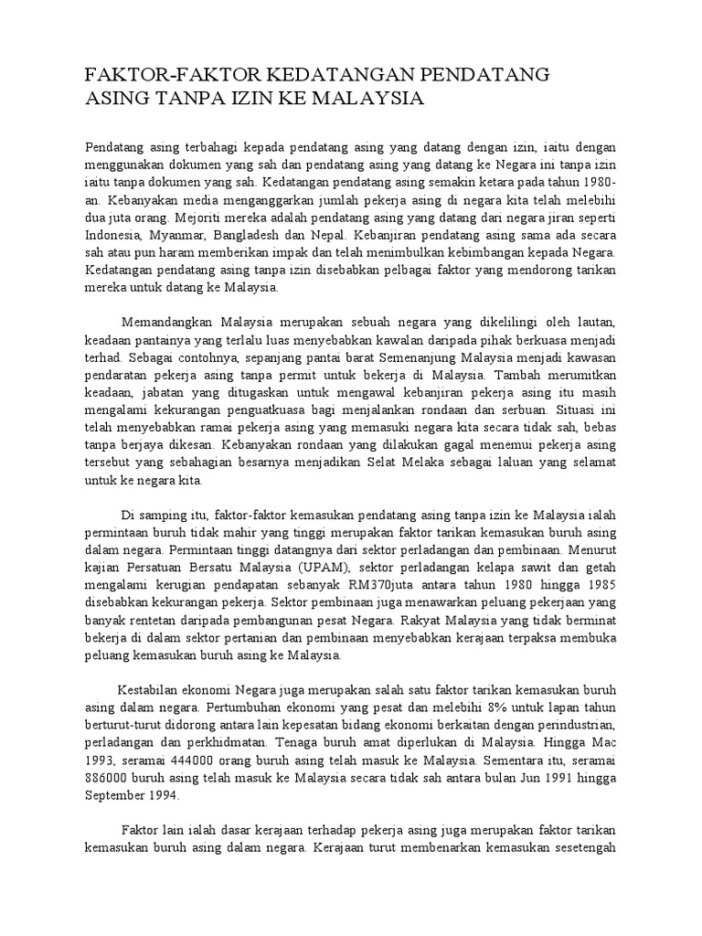 Karangan Faktor Kedatangan Pendatang Asing Ke Malaysia Cikgu Farha